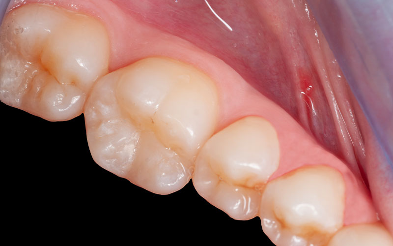 Questa giovane paziente aveva una piccola carie occlusale (la parte del dente che entra in contatto con